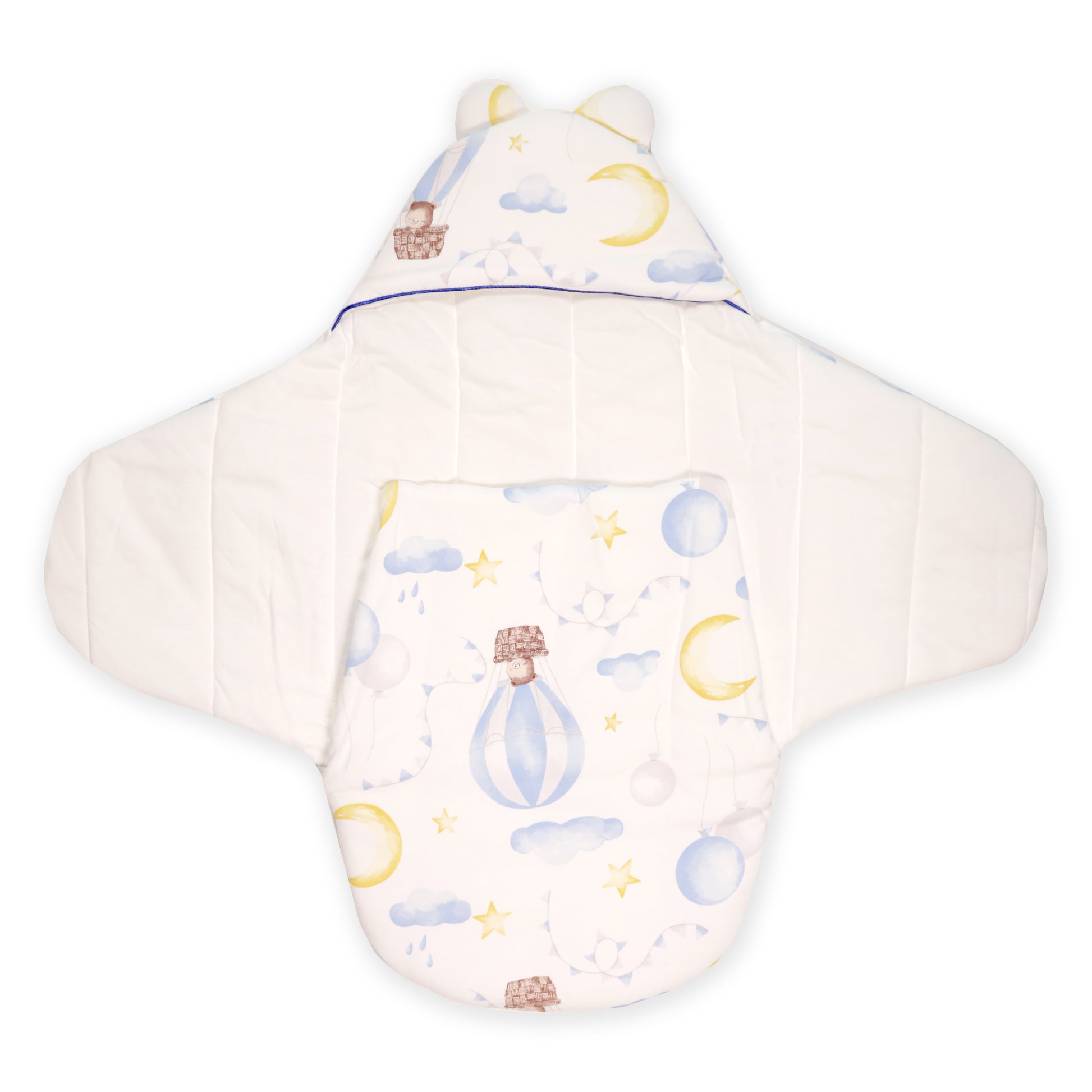 Use it either at home or when travelling, this puffed up mattress can be used as a Sleeping Bag or a Carry Nest for your busy days, so that the baby remains snug and warm. Equipped with a a string harness, this Sleep Nest is a must have for your baby sleep and comfort needs.
