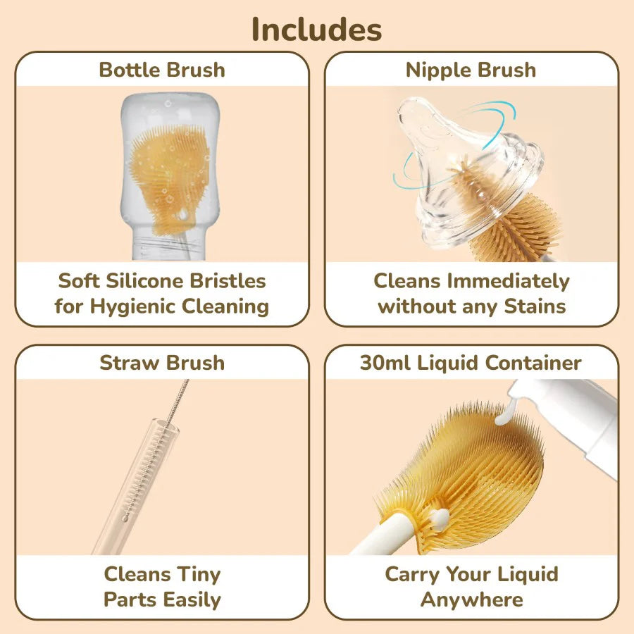 Silicone Nipple Brush: Designed to clean nipples and pacifiers without leaving stains or odors.