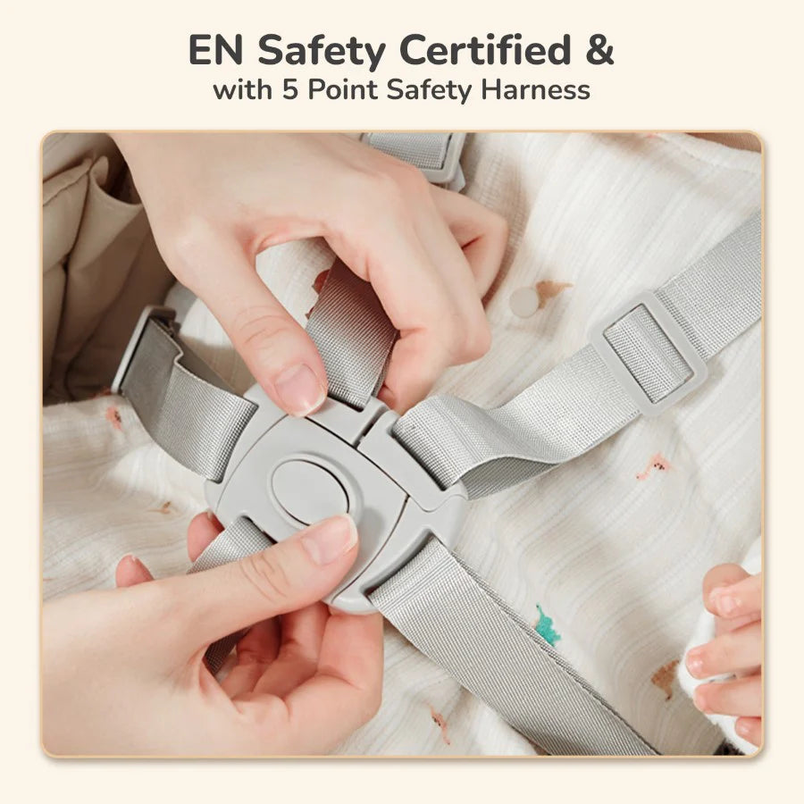 Dimension of Product: 56cms x 76cms x 96cms. Product Weight - 7kgs. Safety Certified: R for Rabbit’s Marshmallow Smart complies with the European Safety Standards with a 5-point safety harness.2-in-1 Multipurpose High Chair with Swing: Effortlessly transform from a highchair into a swing and an activity chair, providing your baby with versatile seating options that grow with them.Compact Fold with Adjustable Height: R for Rabbit’s Marshmallow Smart is travel-friendly and convenient to store with five levels of height adjustment.Dual Tray: Featuring a removable dual tray, cleaning up after meals is a breeze, keeping your highchair spotless and hygienic.Reclinable Backrest and Footrest with PU Cushion: The plush PU cushion and adjustable backrest and footrest ensure your baby is always comfortable, whether they're eating, playing, or napping.360 Degree Portable Wheels with Stopper: Marshmallow Smart High Chair is equipped with wheels to move and place it easily anywhere as required. It also comes with a wheel stopper to ensure the high chair doesn't move when your baby is sitting in it. Installation Video - https://youtu.be/_1VsJmX3IWA?si=S0aAsfaCyQx_tzIJ Manufactured for and Marketed By R for Rabbit.