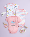 A cute set of 3 100% cotton onesies featuring fun and cute solid designs
