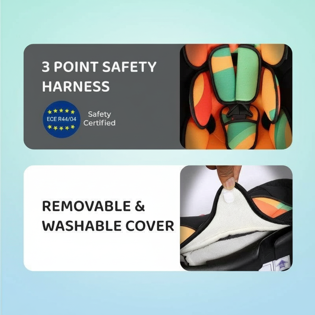 Adjustable 3 Point Safety Belt: Designed to adjust Safety Belt as per your Child's comfort and Height