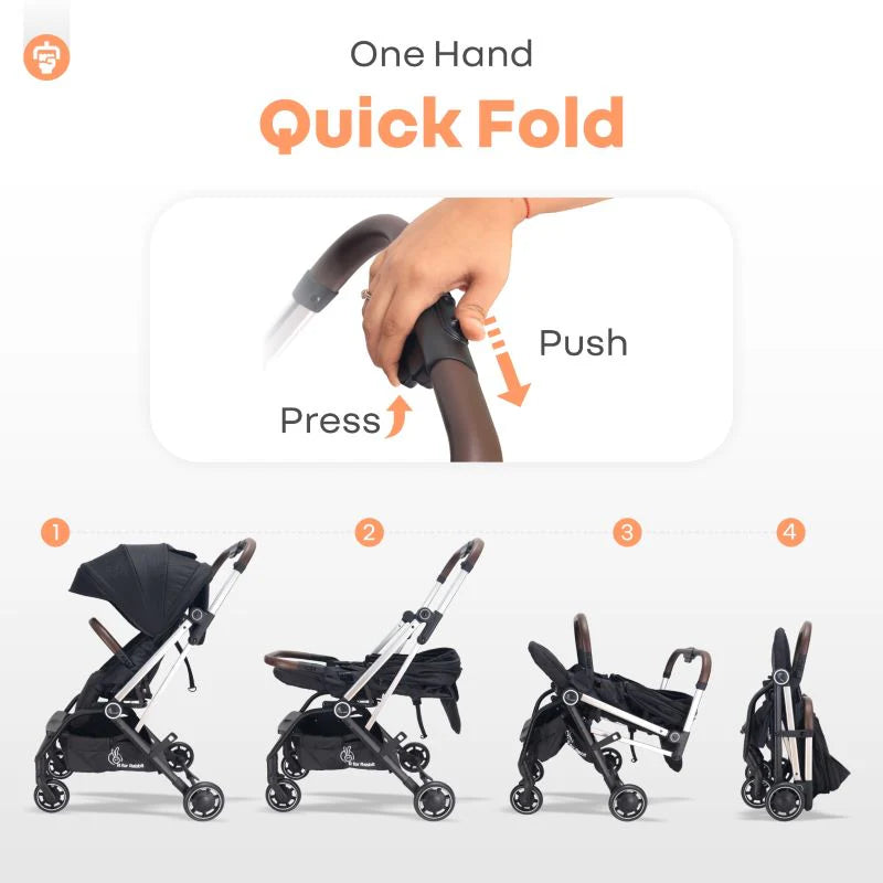 Compact and Travel-friendly: R for Rabbit Street Smart 360-degree rotatable stroller compactness with a smart one hand fold feature in it makes it the ideal travel companion for your family and little one.