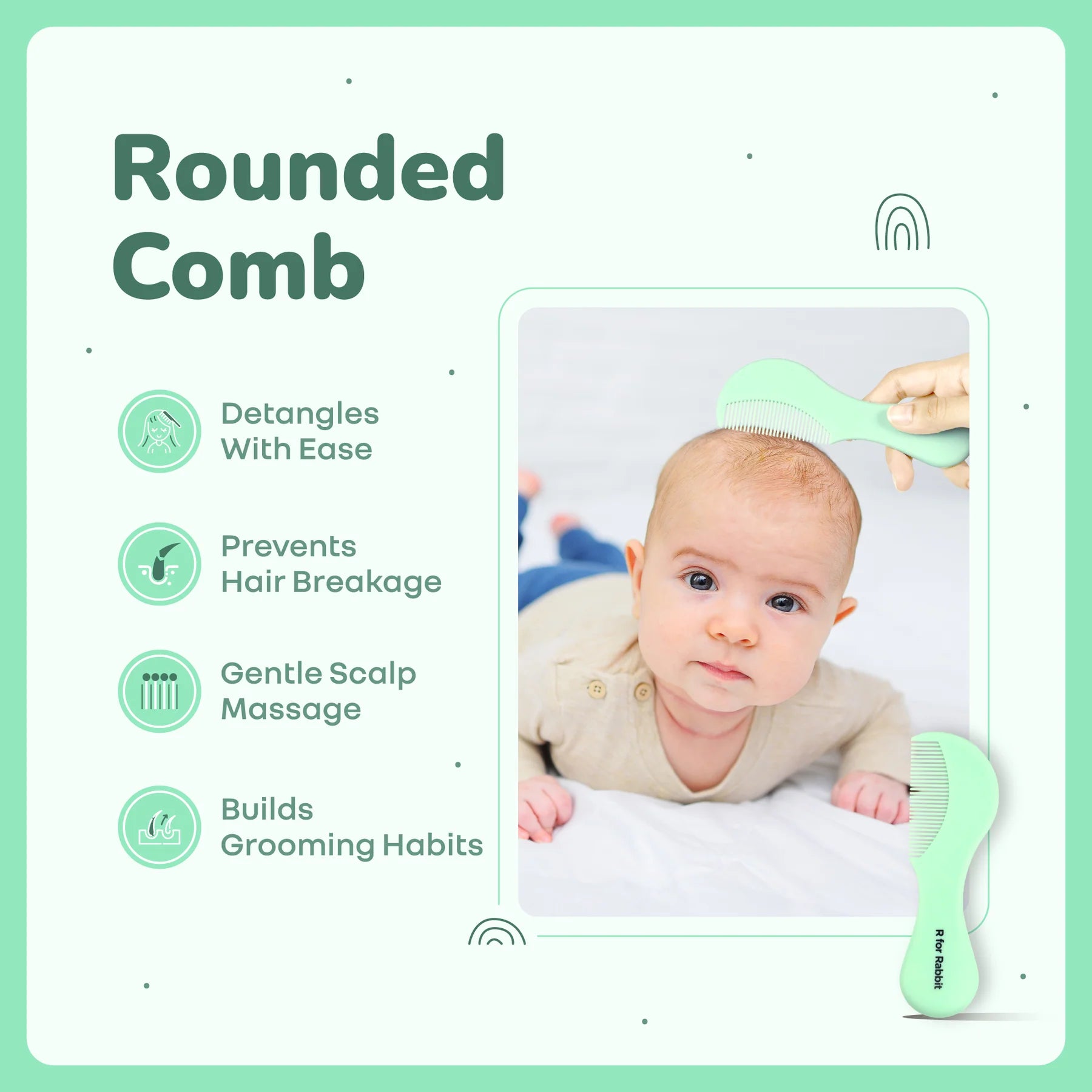 Injury-Free Edges: The comb comes with rounded teeth, smooth and curved edges, making it prevent scratches or nicks on your baby’s sensitive scalp. Also, its gentle grooming feels soothing and 100% stress-free for both you and your baby.